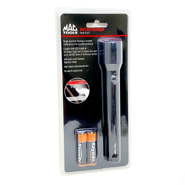 Mac Tools Led Flashlight Fl427 Black 30 15 Lumens Aluminum Housing 2aa Batt 12 99 Picclick